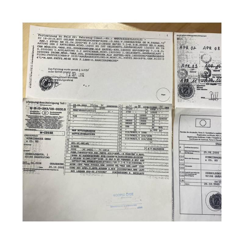 Until 2012, there was a standard MAN Commander 6x4. Modernization was completed in 2012. The frame was reinforced. Axles with gearboxes were installed. A hydraulic clutch was installed. A reinforced gearbox and cardan shaft were installed. A universal 27-ton semi-trailer was installed. The mass of the road train is 160 tons. The estimated cost of the modernization was approximately 200,000.00 euros. The mileage after modernization is 20,000 km.